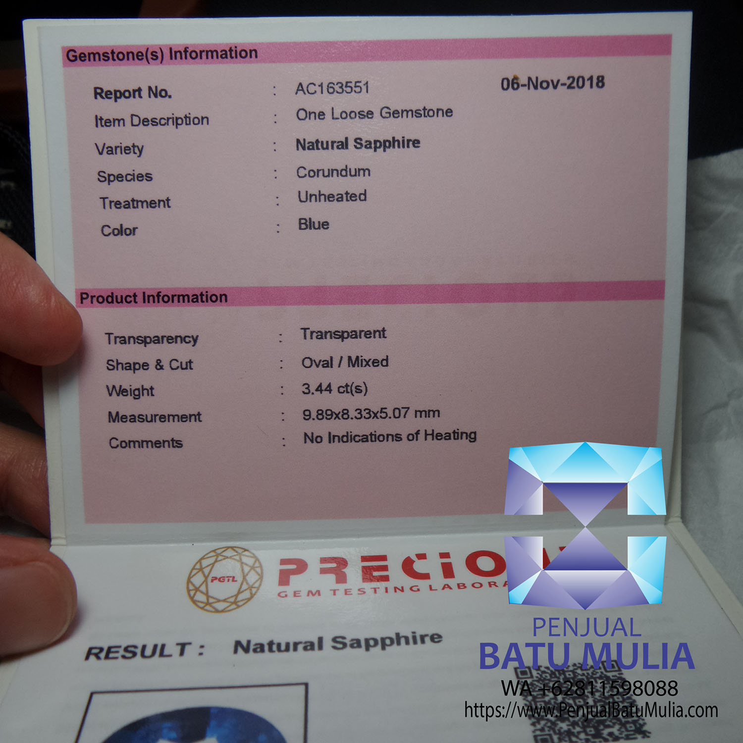 | Certificate | : | PRECIUS Thailand |